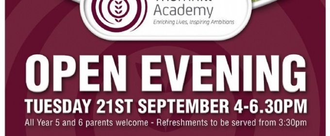 We're pleased to announce our open evening will take place on Tuesday 21st September 4pm — 6.30 pm (refreshments served from 3.30pm).